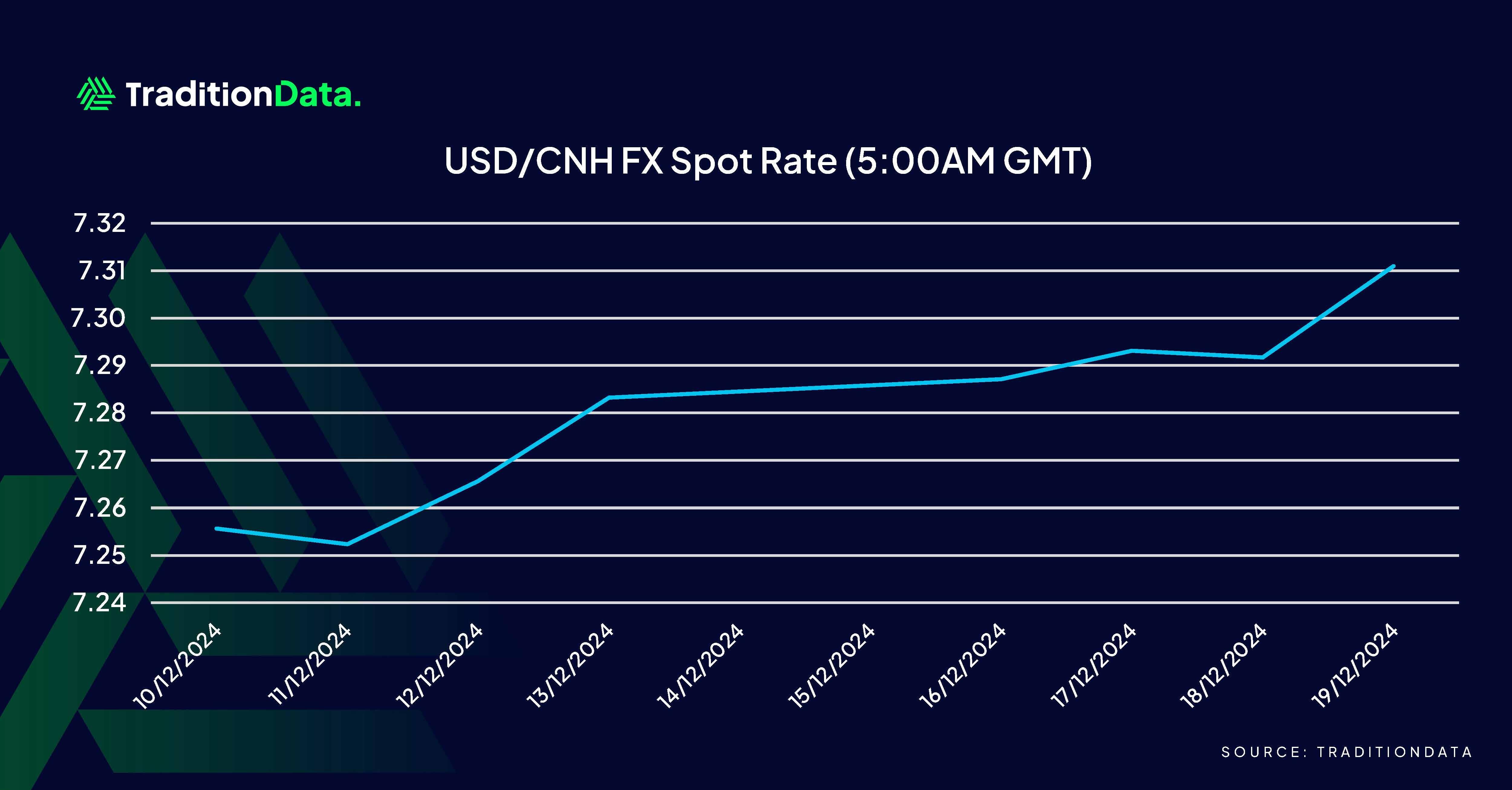 最近的现货外汇市场数据,如下图所示,展示了美元针对离岸人民币(CNH)在最近市场变化后的升值。在市场迅速变化时,我们确保您能够获取准确、独立和全面的数据。