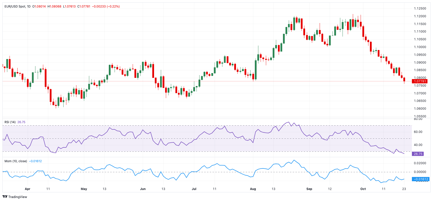 EUR/USD进一步下跌,并创下接近1.0760的新三个月低点。美元的上涨受益于美国国债收益率和美国大选。周五公布的疲软的制造业采购经理人指数(PMI)可能加速欧元的下跌。