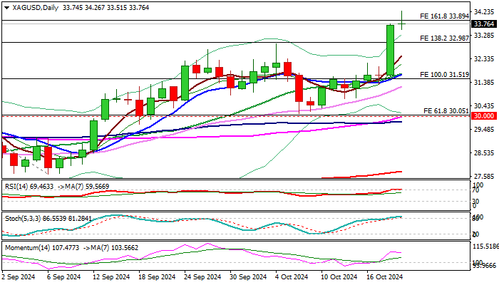 周一,白银价格触及2012年11月以来的新高,延续了上周五6.4%的创纪录日内涨幅,其中心理关口34.00美元被突破。
