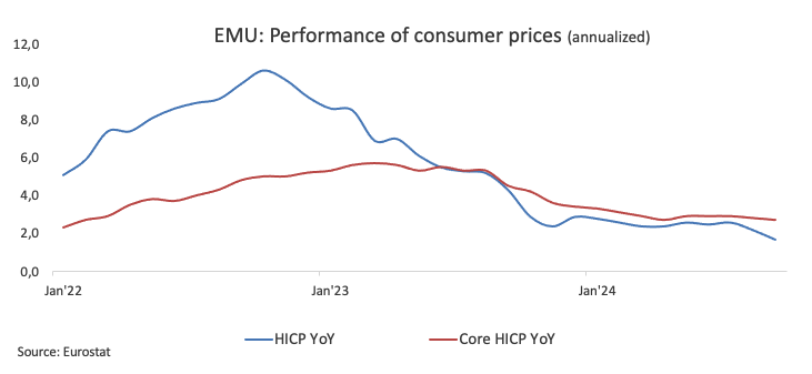 EUR/USD 下跌至新低,并接近1.0800区域。进一步上涨提振了美元至两个月新高。欧洲央行降低了政策利率25个基点,正如市场普遍预期的那样。
