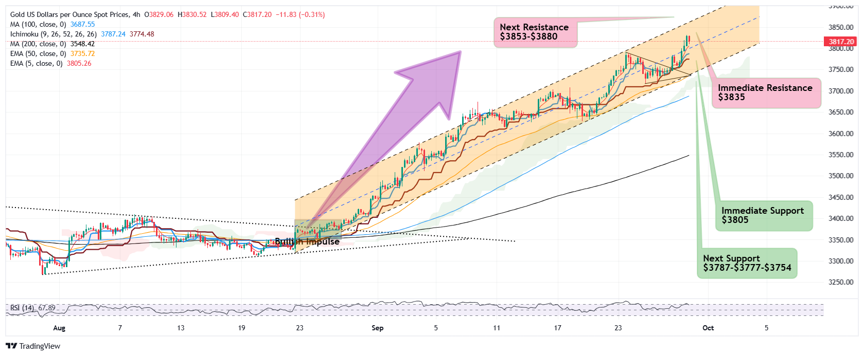 黄金以横盘交易开启了这一周,但宏观因素支撑了看涨的势头。在伦敦开盘时,黄金价格开始积累上涨幅度,导致其迅速且强劲地上涨,达到又一个创纪录的高点3,831美元,目前正在3810美元以...