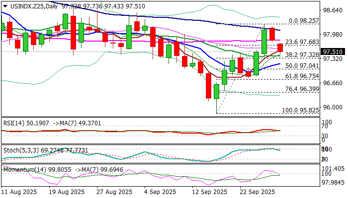 美元指数连续第二天处于下跌状态,受到了对美国政府可能关闭的担忧以及对美联储降息前景的乐观预期的压力,这在一定程度上抵消了上周积极的美国经济数据所带来的正面影响。