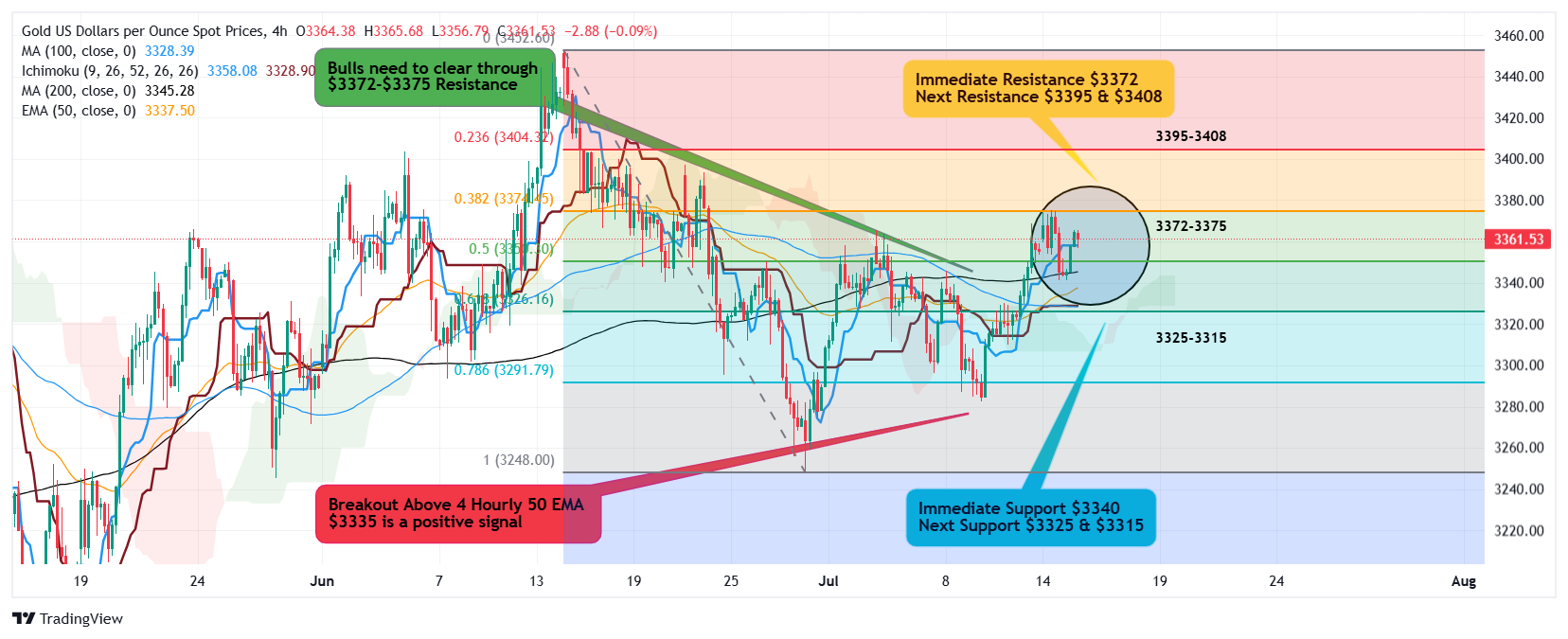 重新出现的关税威胁和反制措施引发了全球宏观经济担忧。黄金在$3340附近找到了买家,并反弹回到$3365。牛市需要突破摆动高点$3375。支撑$3340必须保持,因为如果跌破该区域...