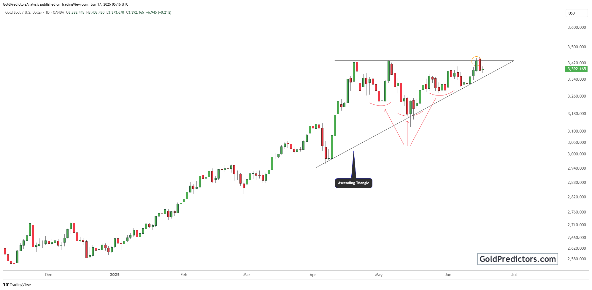 周二早上,黄金在一个狭窄的区间内交易,此前周一下跌近2%,并且日收盘跌破心理关口$3400支撑位(已转为阻力,目前限制价格波动)。